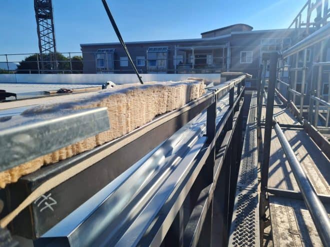 Gebäude und Dach werden für die Aufstockung vorbereitet.